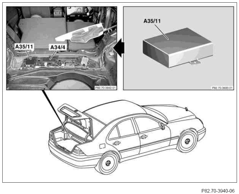 1 Clip voice control system control unit (A35/11) to accessories plate in trunk.
