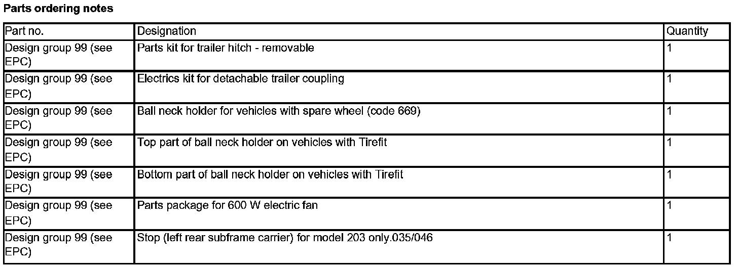 Parts Ordering Notes: