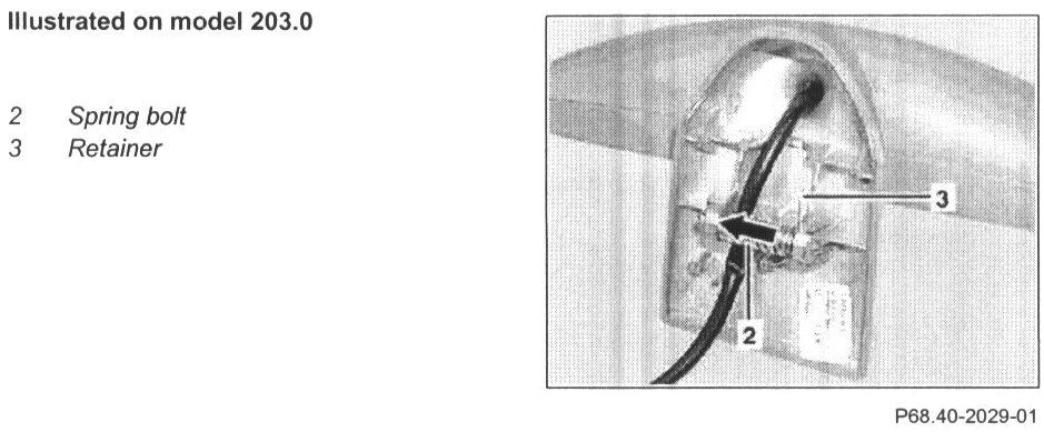 NOTE: Installation Press spring bolt (2) together with pliers (arrow) and allow retainer to catch (3)