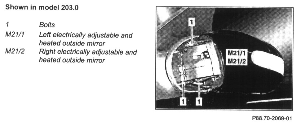 NOTE: Left electrically adjustable and heated outside rearview mirror (M21/1), right (M21/2)