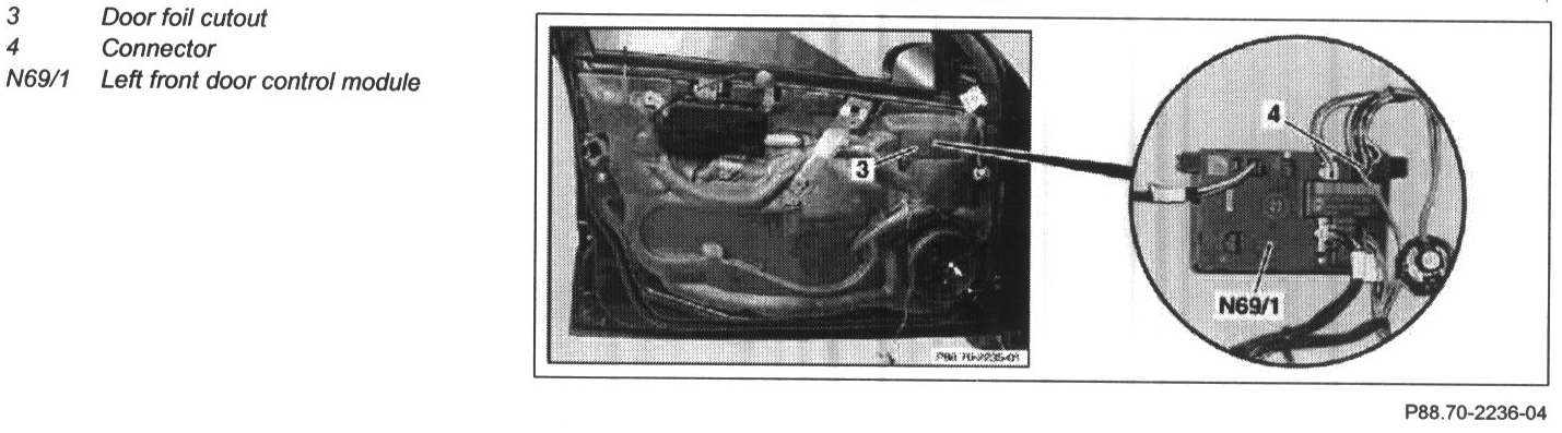 3.2 Disconnect connector (4) from left front door control module (N69/1)
