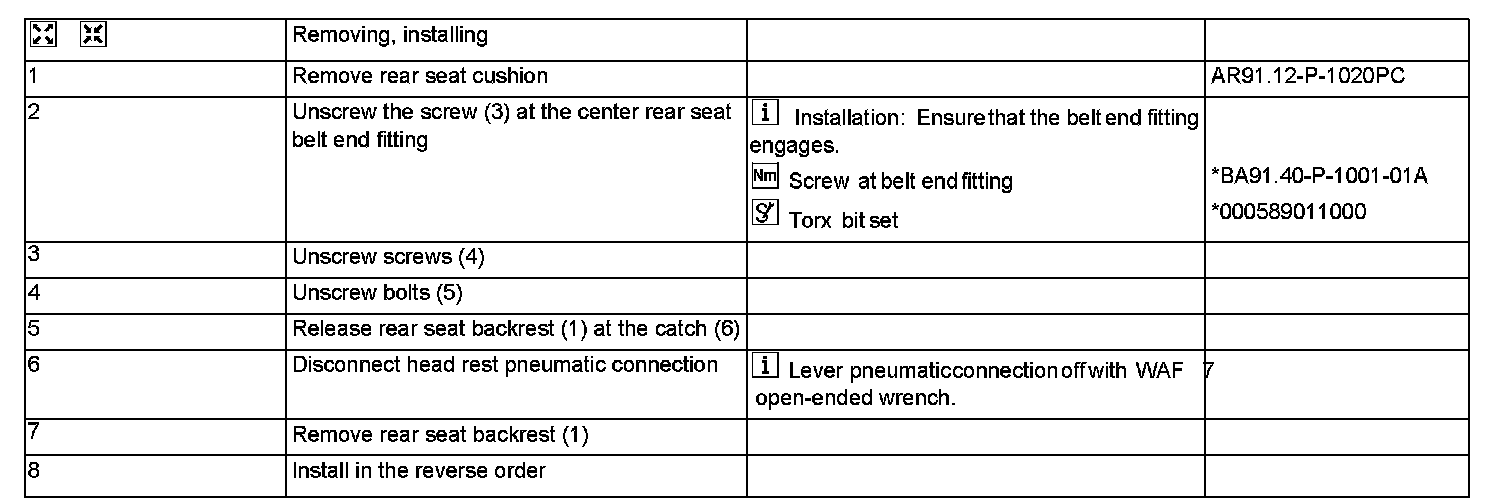 AR91.12-P-1620PC Remove/Install Rear Seat Backrest