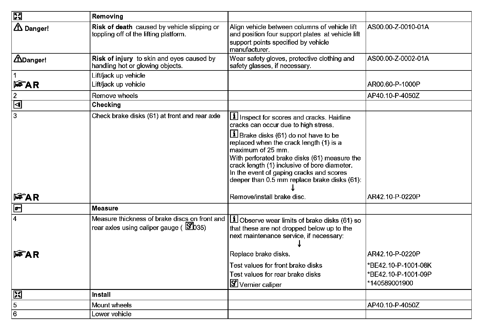 AP42.10-P-4258BP Inspect Condition of Brake Disks