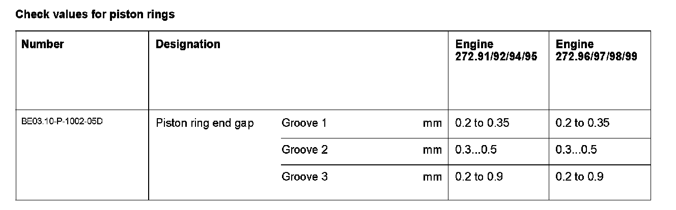 The end gap of the oil scraper ring cannot be measured because of its three-part structure. The oil scraper ring must be replaced along with the compression rings.