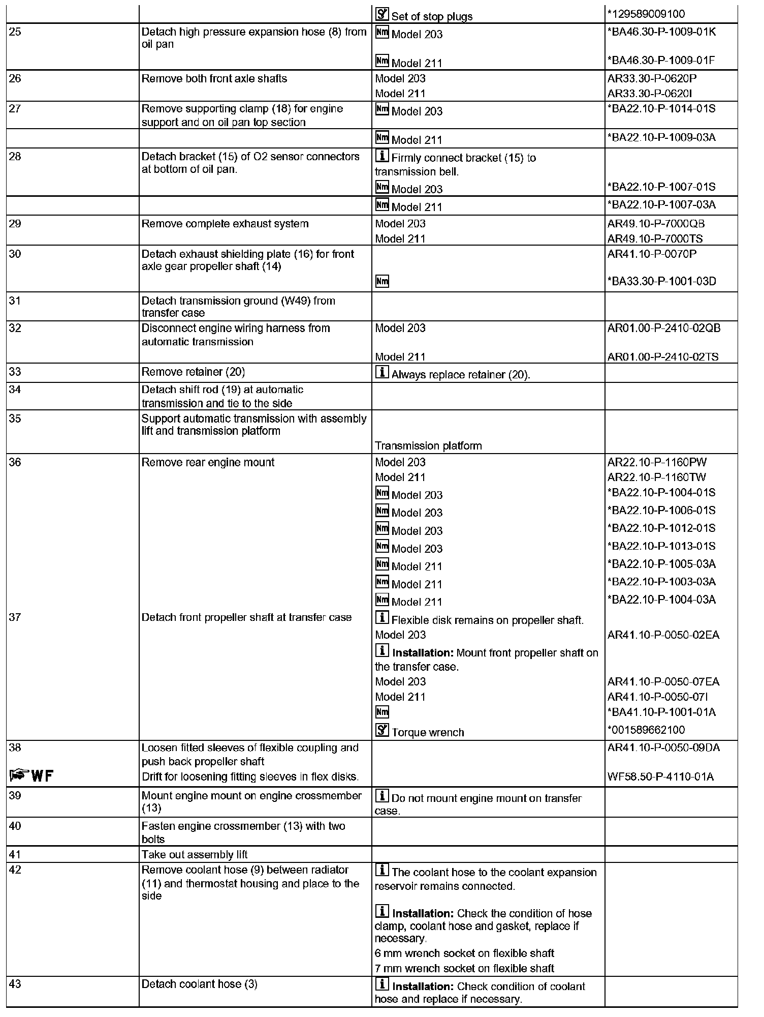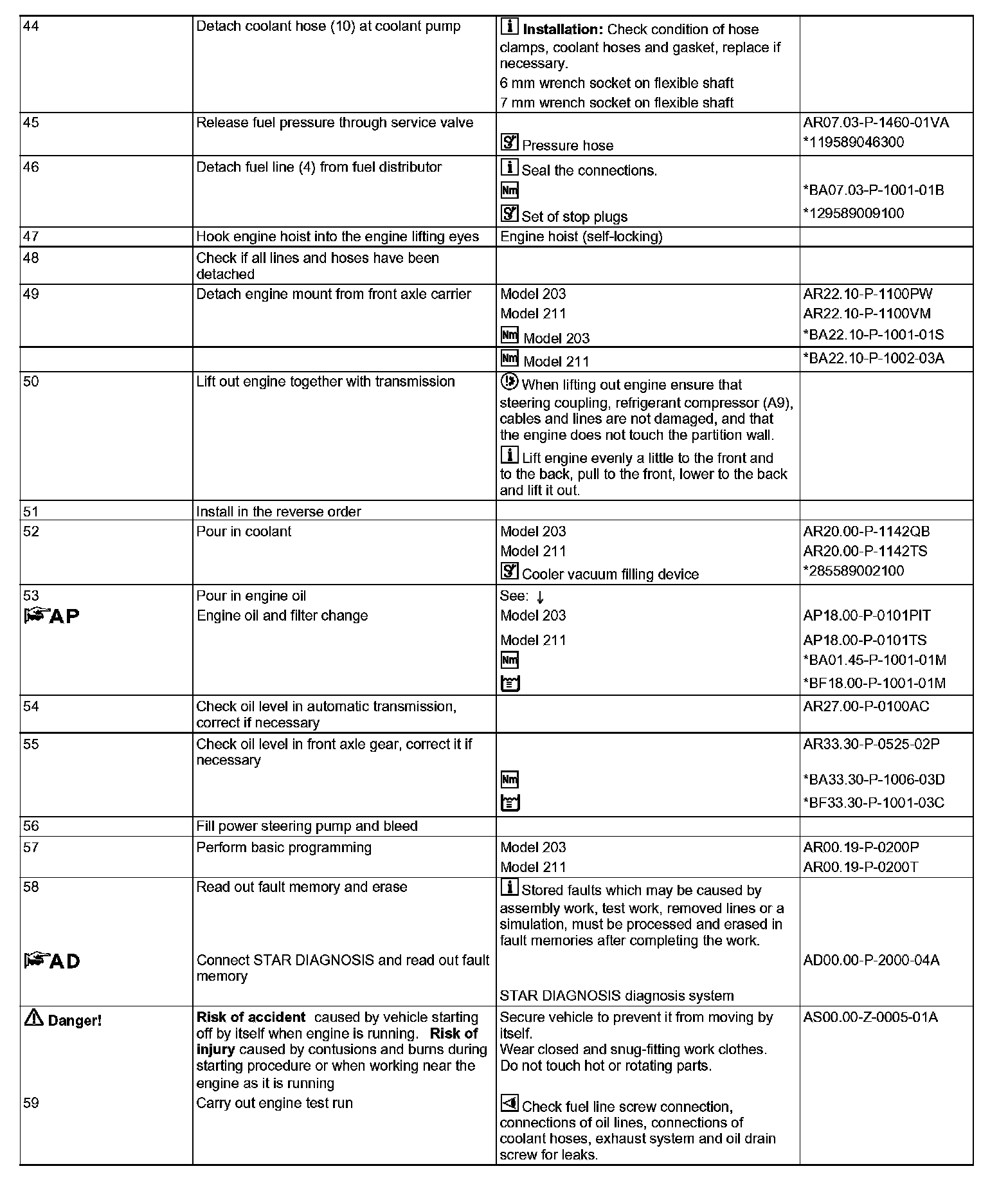 AR01.10-P-2401QD Remove/install engine with transmissionComponent Identification: