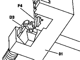 6 Place the assembly insert (F401) in the rivet press tool (01) and fix in place with the mounting screw.