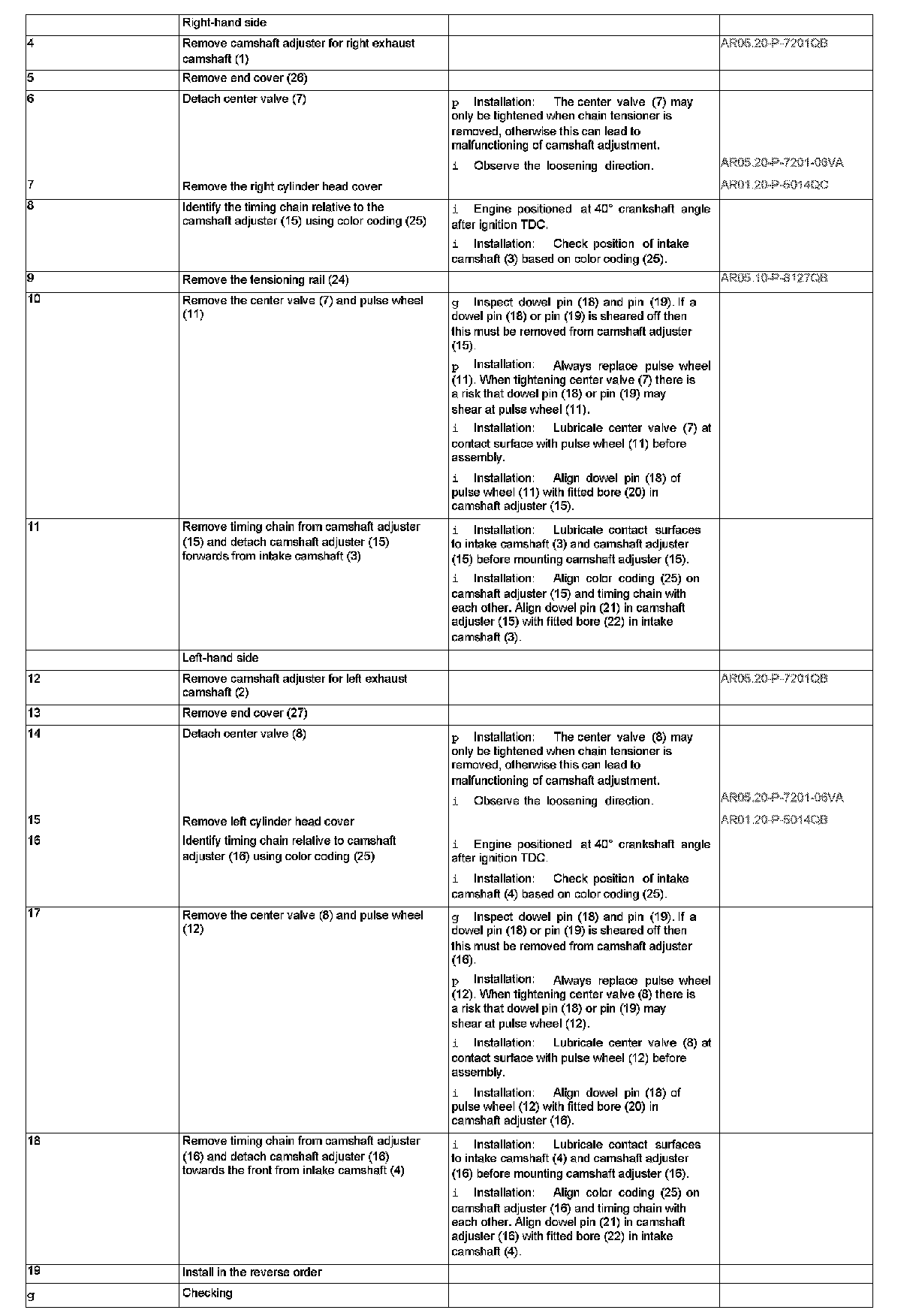 AR05.20-P-7201QC Remove/install camshafts