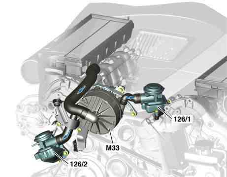 The air shutoff valves are located between the electrical air pump and the respective cylinder head.