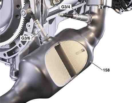 Appreciable conversion of the pollutants does not commence until an operating temperature of approx. 250°C. This temperature is reached quickly after the engine is started, due to the near-engine location, the air-gap insulation on the exhaust manifold and mixture enrichment.