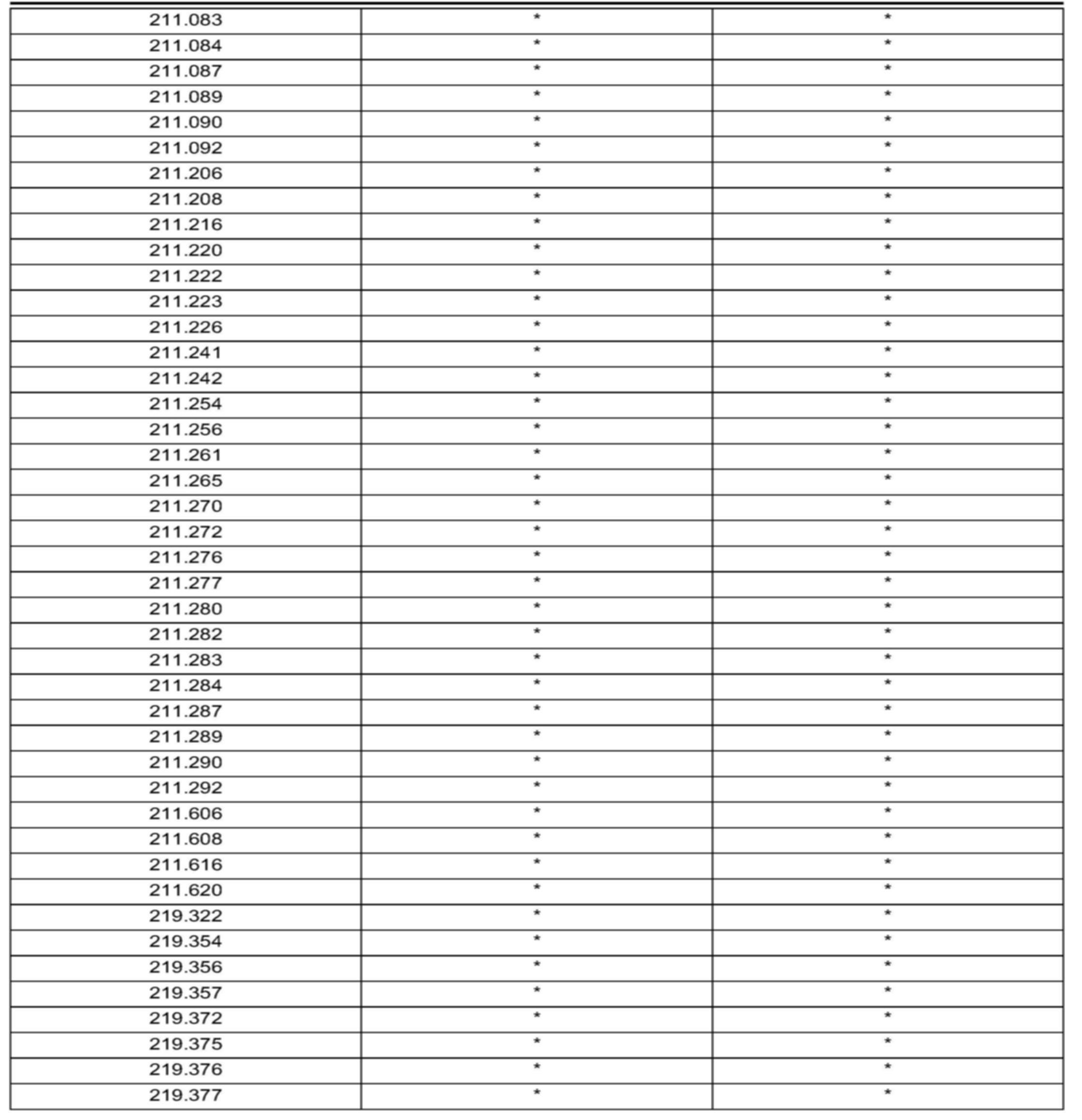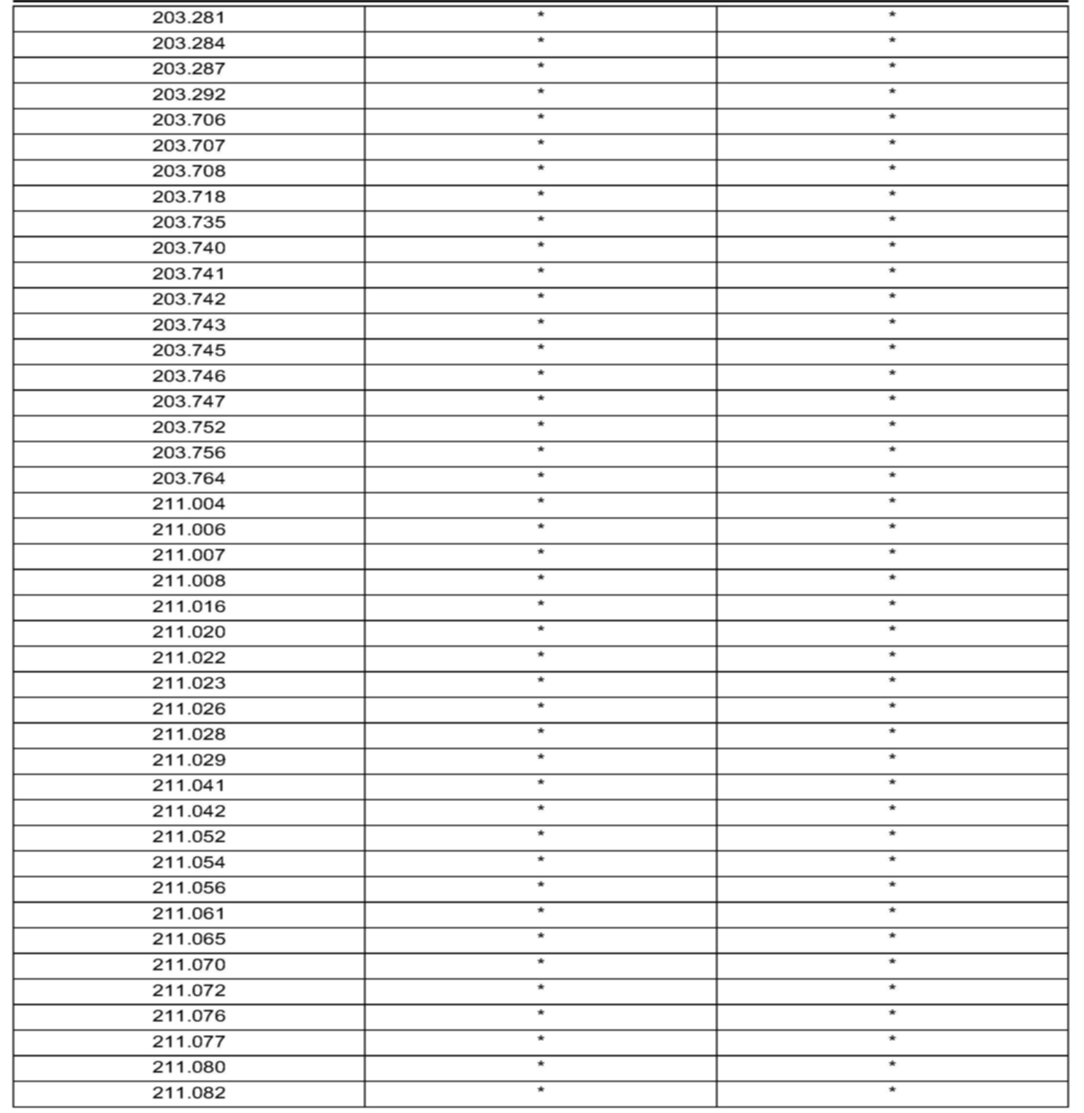 Validity Model series 203, 211, 219, 221 produced up to Wk 41 (2006)