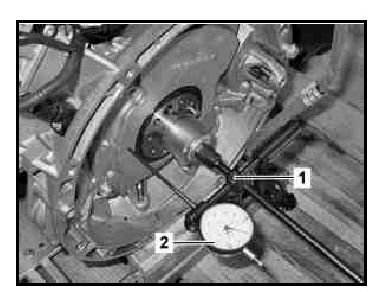 1 Install dial indicator (2) with dial indicator holder (1)