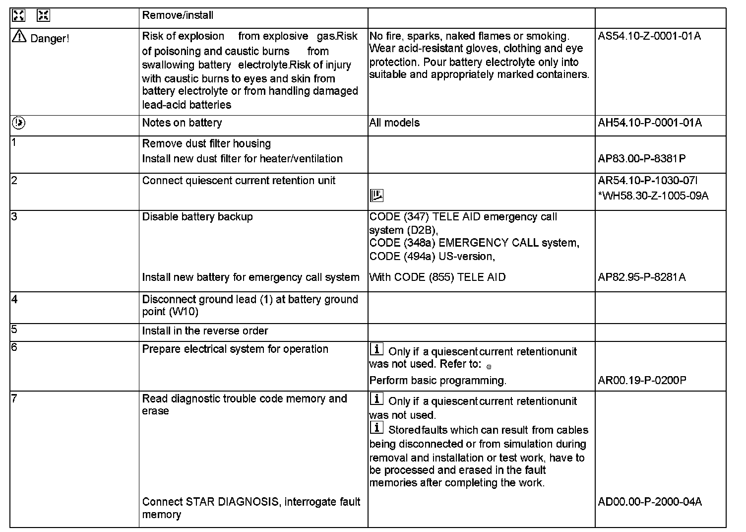 AR54.10-P-0003P Disconnect/Connect Ground Lead of Battery