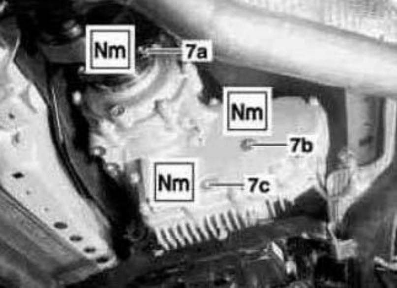 7. Allow oil to run out for one to two minutes then screw in and tighten inspection opening screw plug (7b). Install new sealing ring for inspection opening screw plug (7b).