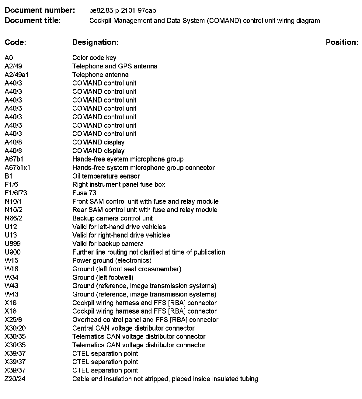 Cockpit Management And Data System (COMAND) Control Unit Wiring Diagram PE82.85-P-2101CAB