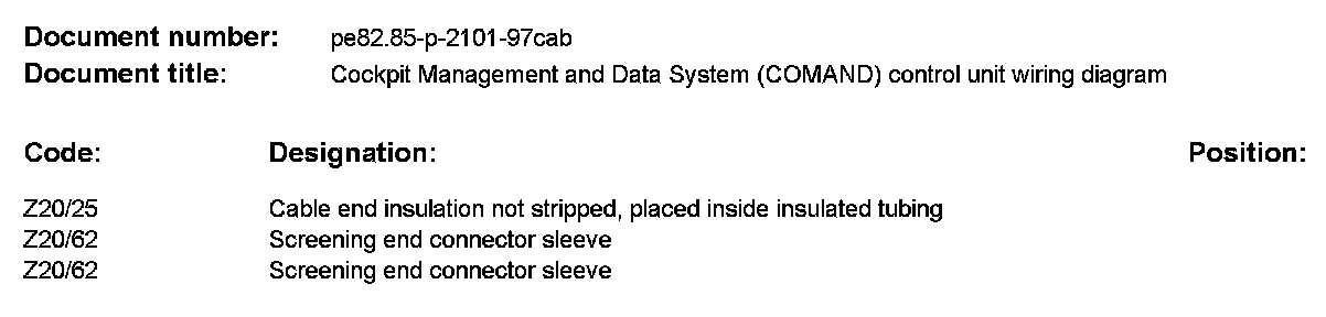 PE82.85-P-2101CAB Cockpit Management and Data System (COMAND) Control Unit Wiring Diagram