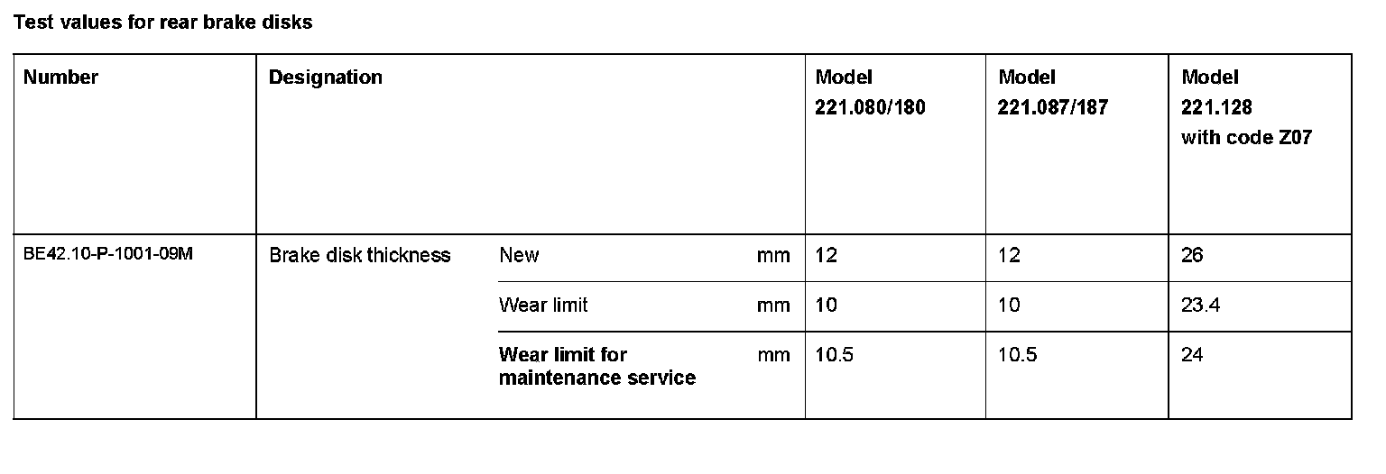 BE42.10-P-1000-09M Test values for rear brake disksTest Values For Rear Brake Disks: