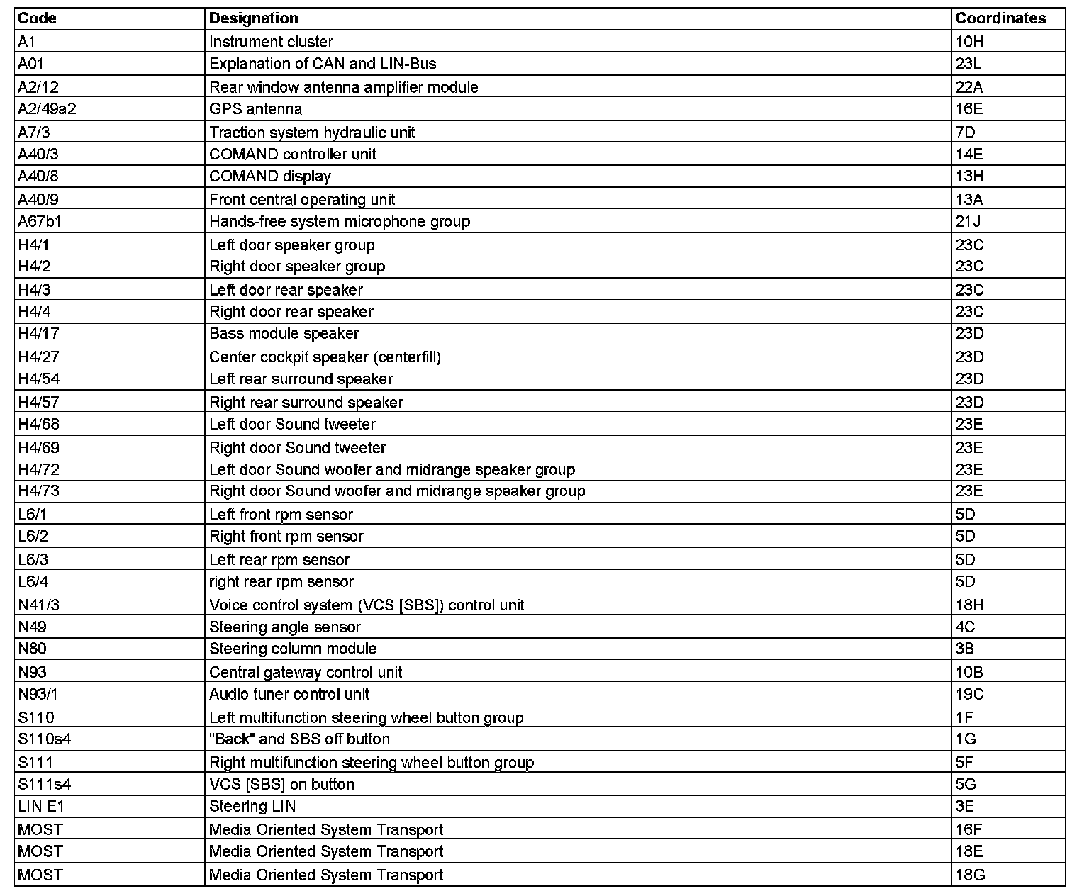 Component Description/Coordinates, A1 To MOST: