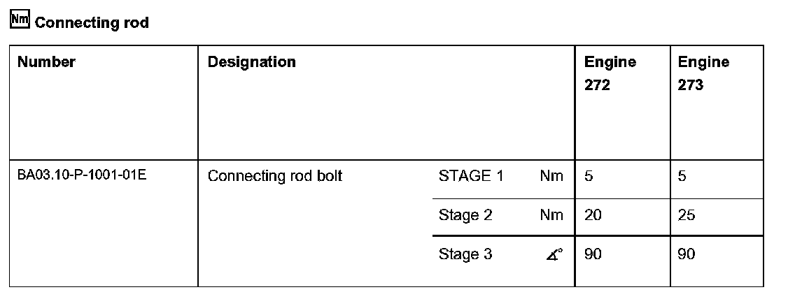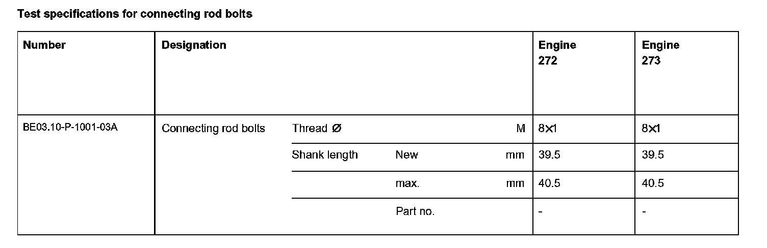 Test specifications for connecting rod bolts: