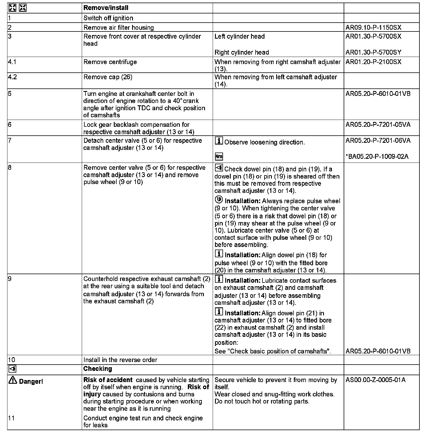 AR05.20-P-7201SY Remove/Install Camshaft Adjusters