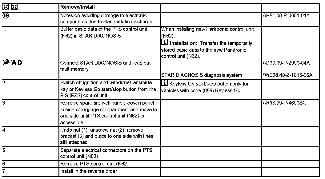 AR54.65-P-0006SC Remove/Install Parktronic System (PTS) Control Unit