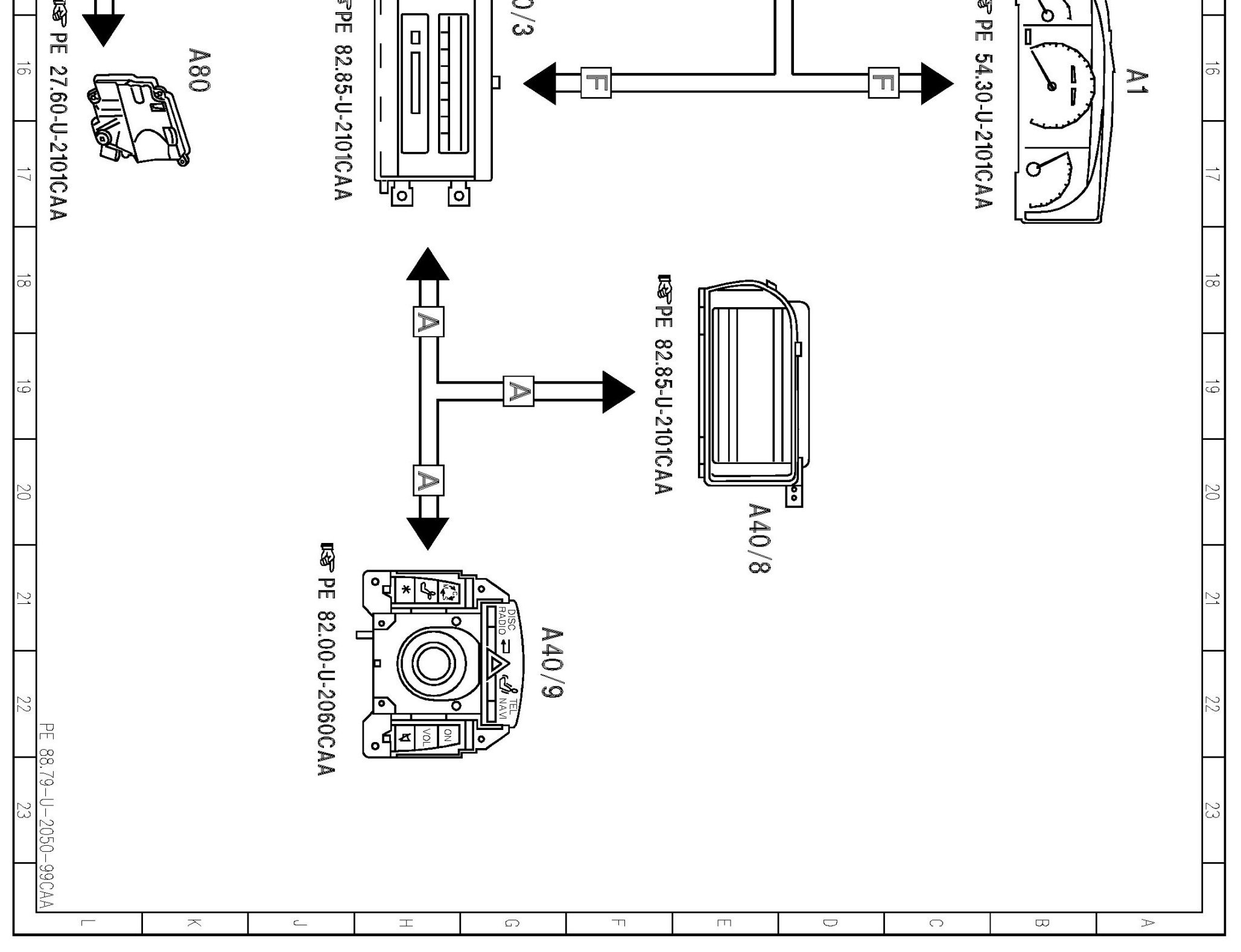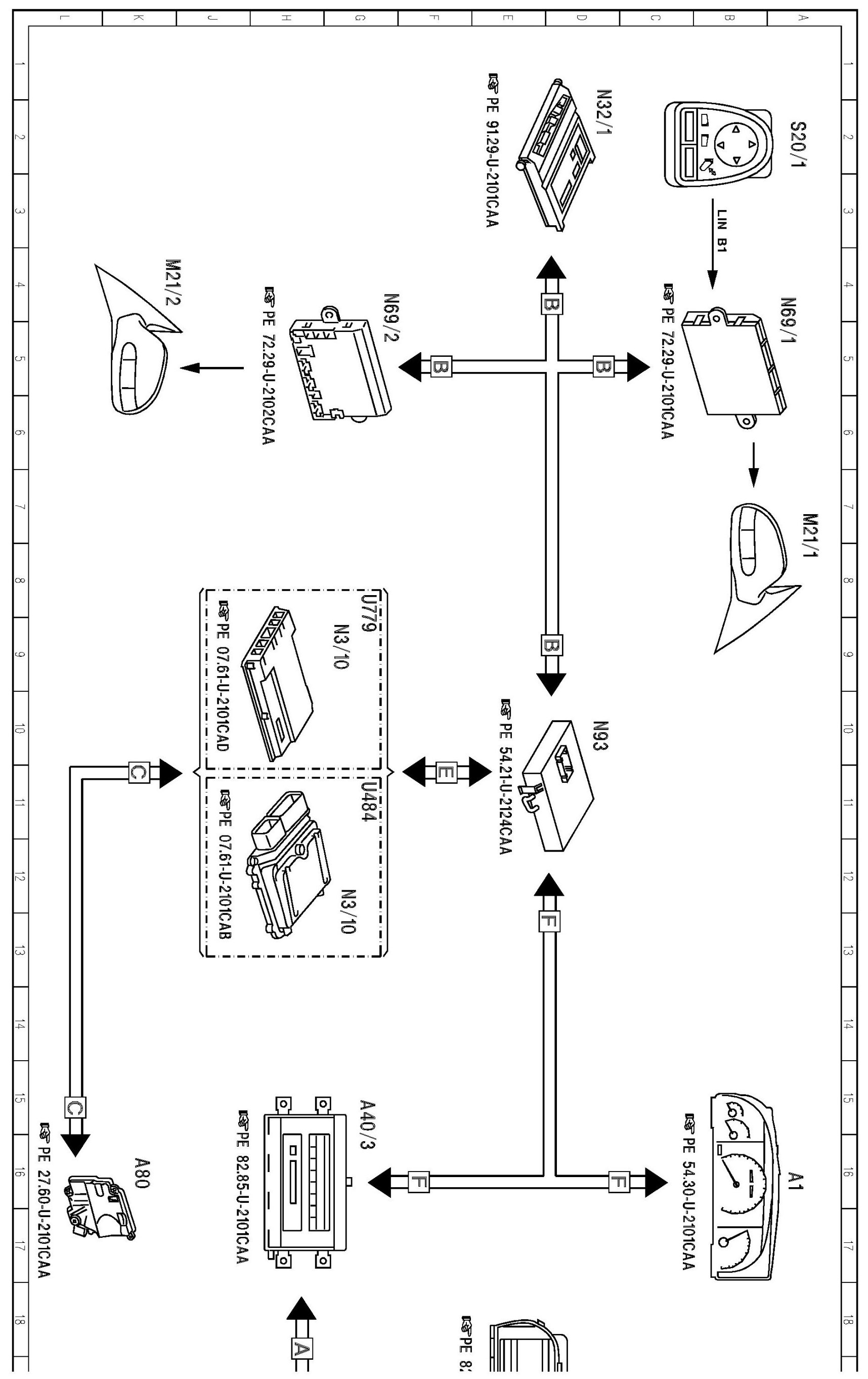 PE88.79-U-2050CAA Function Schematic For Mirror Adjustment Electrical System