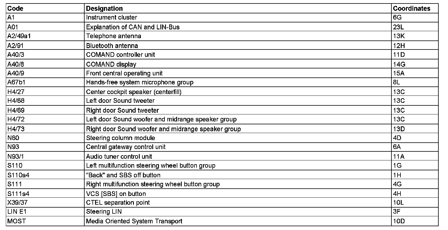 Component Description/Coordinates, A1 To MOST: