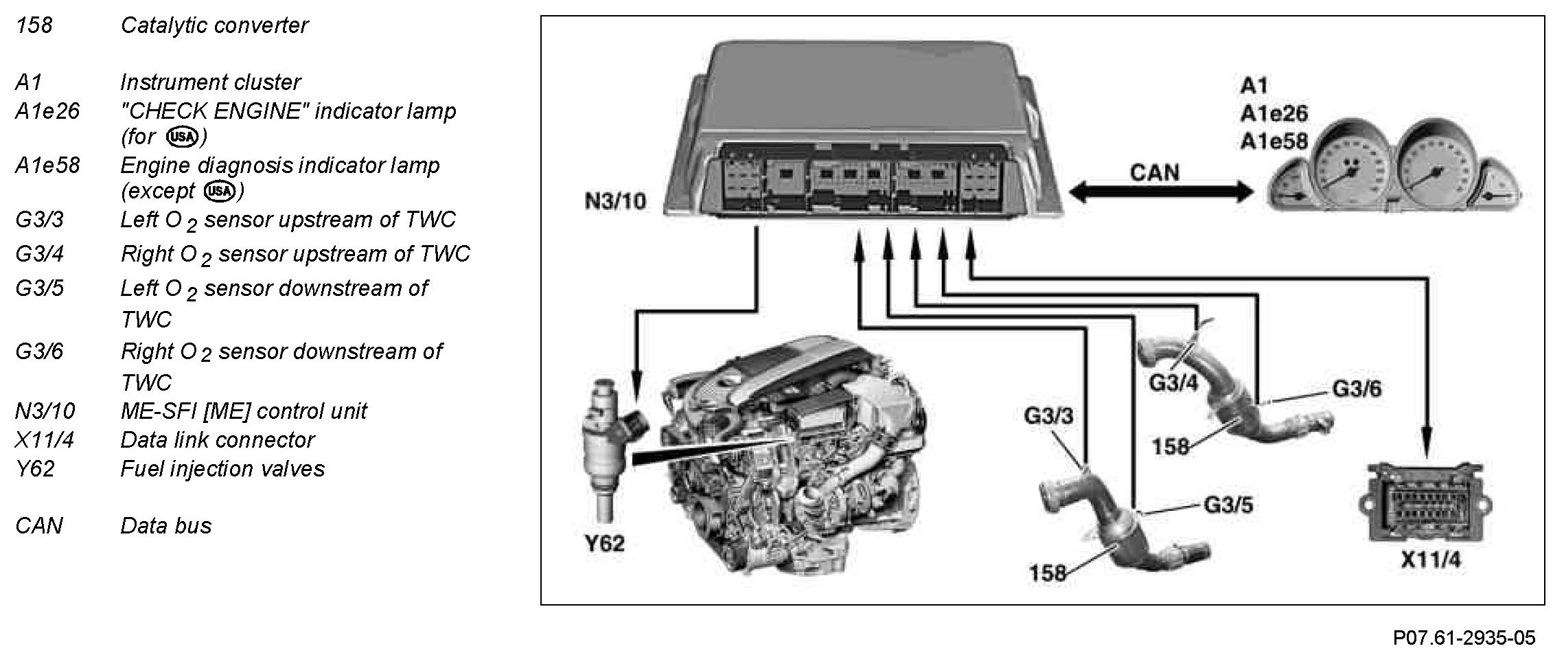 In case of error the engine diagnosis indicator lamp lights up or for United States of America the CHECK ENGINE indicator lamp in the instrument cluster and a fault is stored in the fault memory.