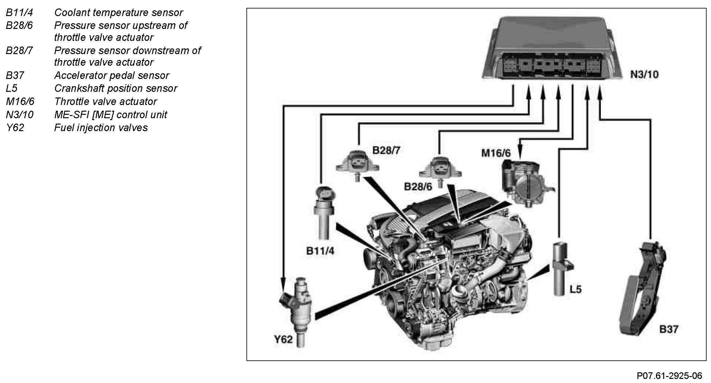 The additional quantity of fuel is metered to the engine by the ME control unit (N3/10) in line with the performance map. The injection time is extended accordingly for this purpose.