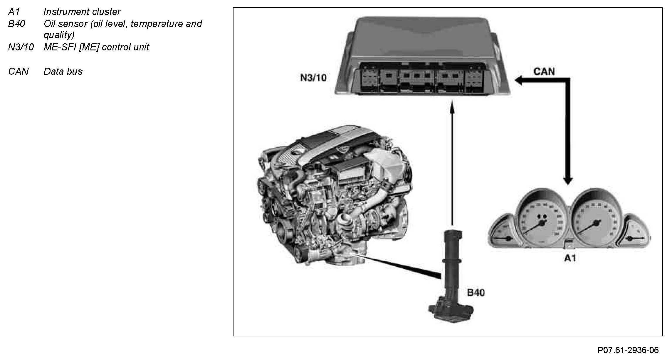 Power for the oil sensor of approx. 5 V (sensor voltage) is supplied by the ME-SFI [ME] control unit.