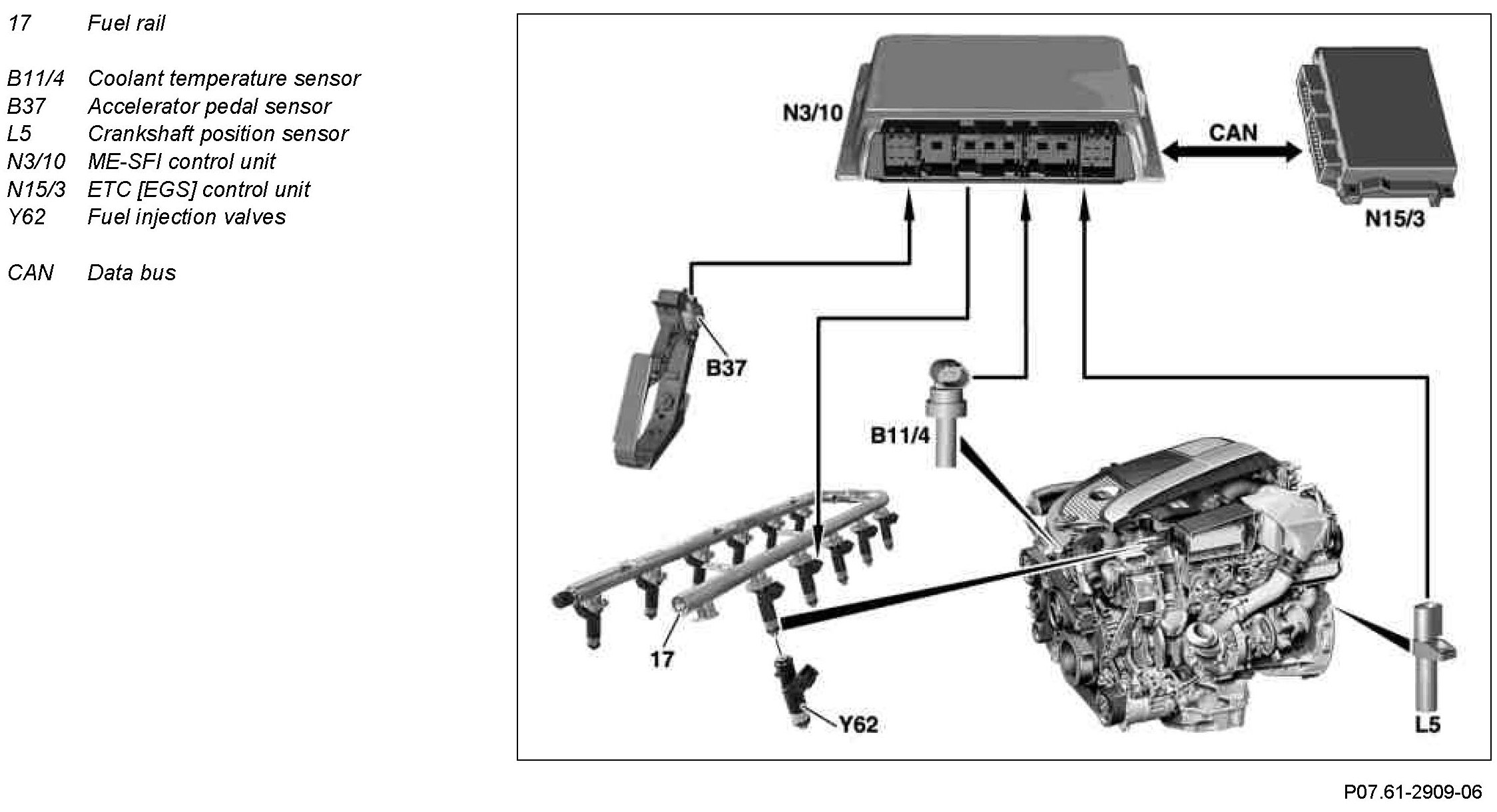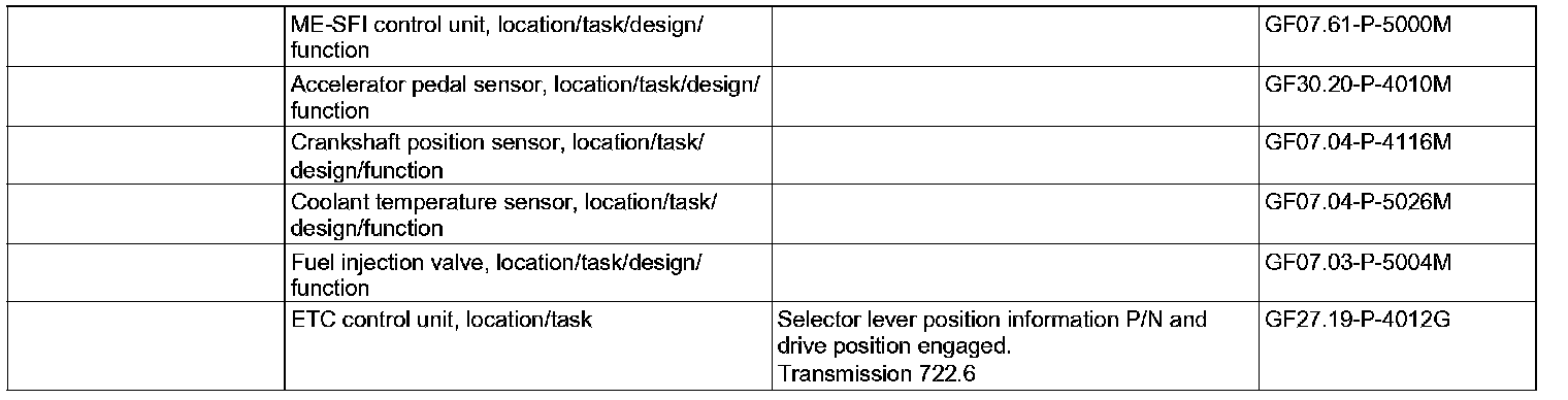 In overrun mode, the ME-SFI control unit switches off the fuel injection valves in line with the coolant temperature and the gear selected, provided that the accelerator pedal is not depressed (detected via actual value signal from pedal value sensor).