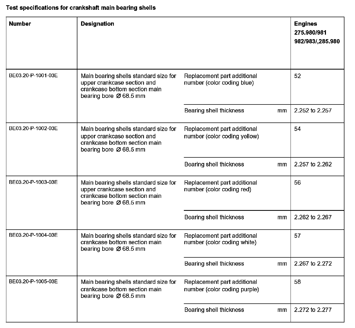 BE03.20-P-1000-03E Inspection Data of Crankshaft Main Bearing Shells