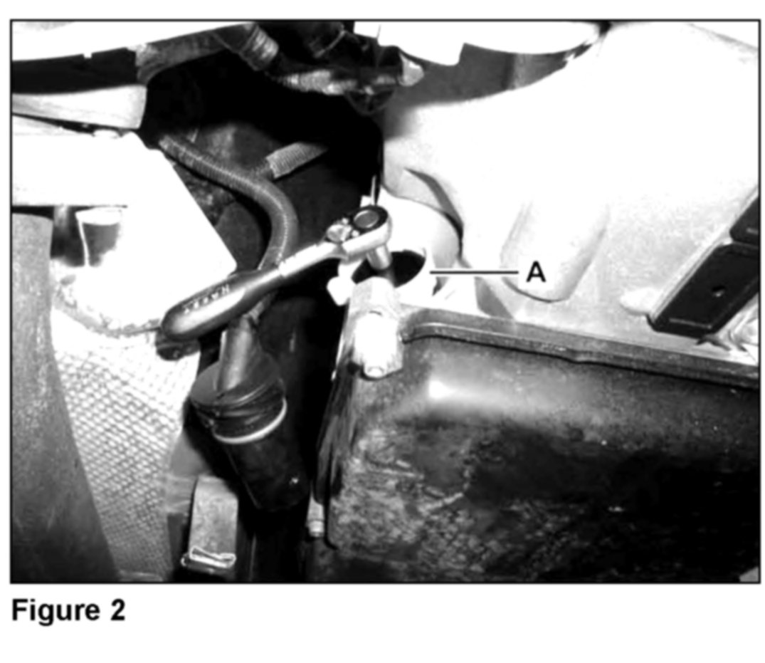 7. Remove breakaway locking tab from dipstick tube cap and check fluid level; the fluid level must be between the min and max marks (A, Figure 3).