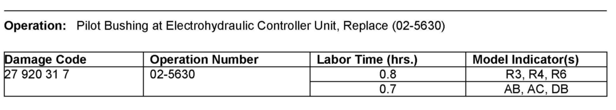 ^ The following allowable labor operation should be used when submitting a warranty claim for this repair:
