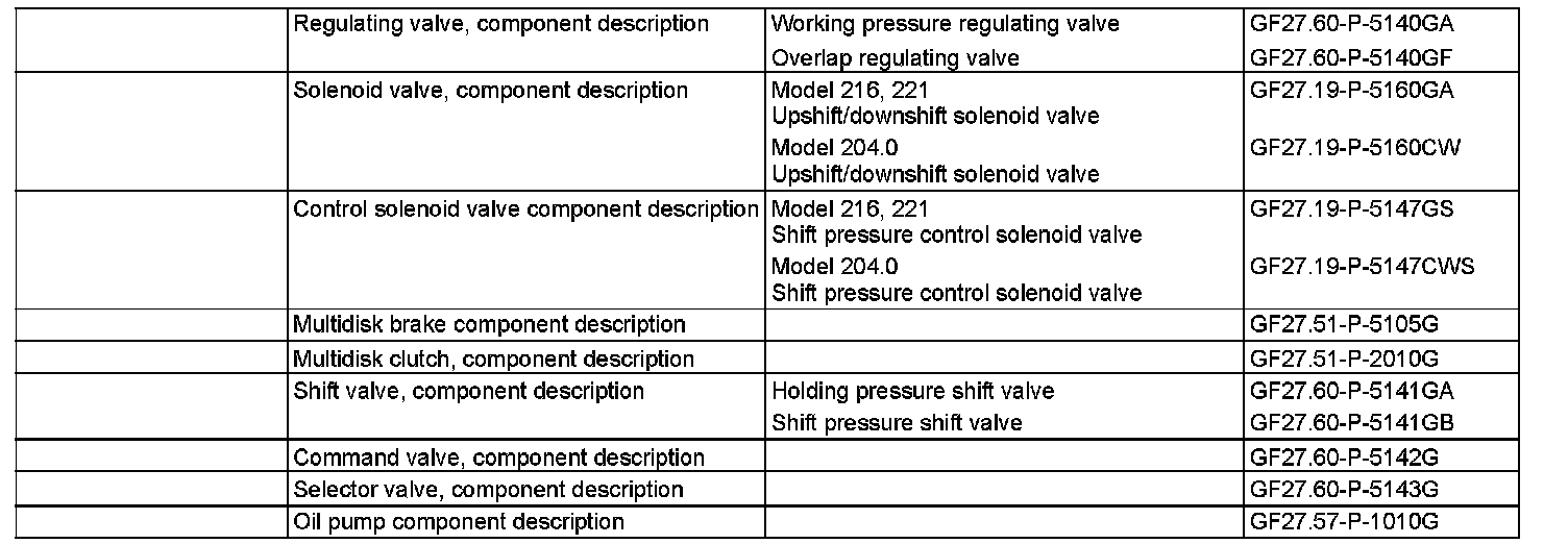The working pressure supplies pressure to the hydraulic control and transmission elements. It is the highest hydraulic pressure in the entire hydraulic system. The level of working pressure is regulated at the working pressure regulating valve depending on current load and the gear engaged. All other pressures required for the transmission control are derived from the working pressure.