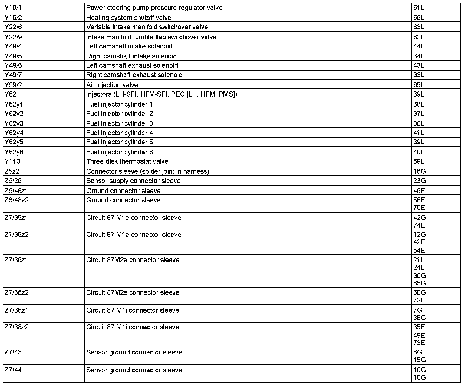 Component Description/Coordinates, Y10/1 To Z7/44: