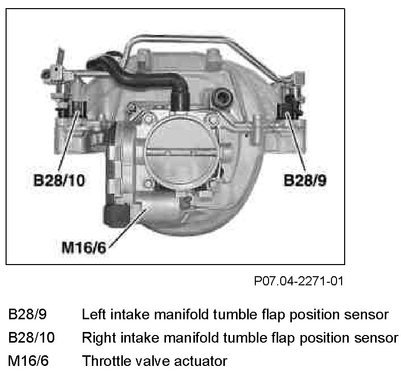 The position sensors are located at the rear on the intake manifold over the tumble flap shafts.