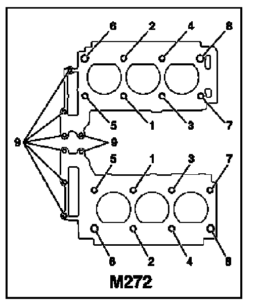 5 Tighten cylinder head bolts (1-8) to stage 4.