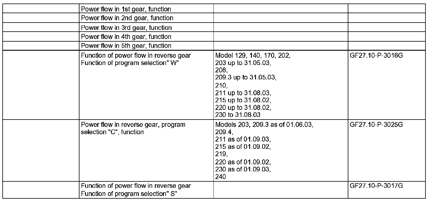 When the torque converter lockup clutch is engaged, power is transmitted via this mechanical connection. Via the gear wheels of the individual planetary gear sets, the torques coming from the torque converter, depending on the gear ratio and shift elements actuated, are passed on to the output shaft with the help of overrunning clutches, multi-disk clutches and brakes.
