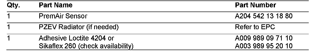 The below provided premair sensor removal and installation instruction is to be performed in the event the PZEV coated radiator requires replacement or a sensor fault has been determined in conjunction with S-B-07.04/88.
