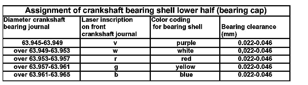 ^ The bottom crankshaft bearing shells are assigned to the crankshaft journal of the crankshaft by means of letters (initial letter of the particular color).