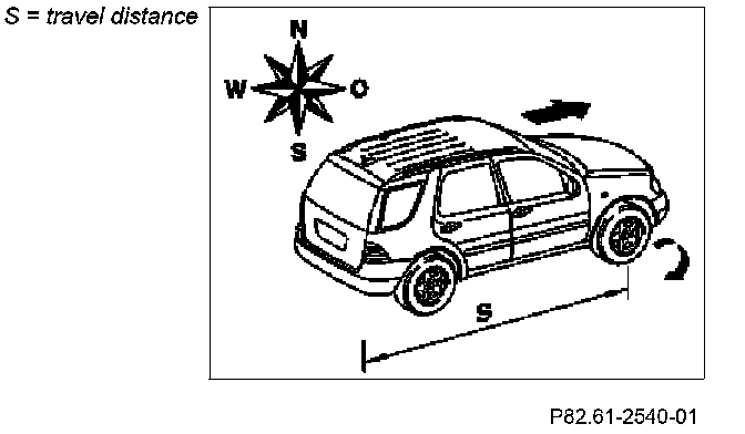 The difference between the calculated and the actual travel distance between two turn-off points is used for the automatic recalibration of the tire circumference (necessary because of the tire wear).