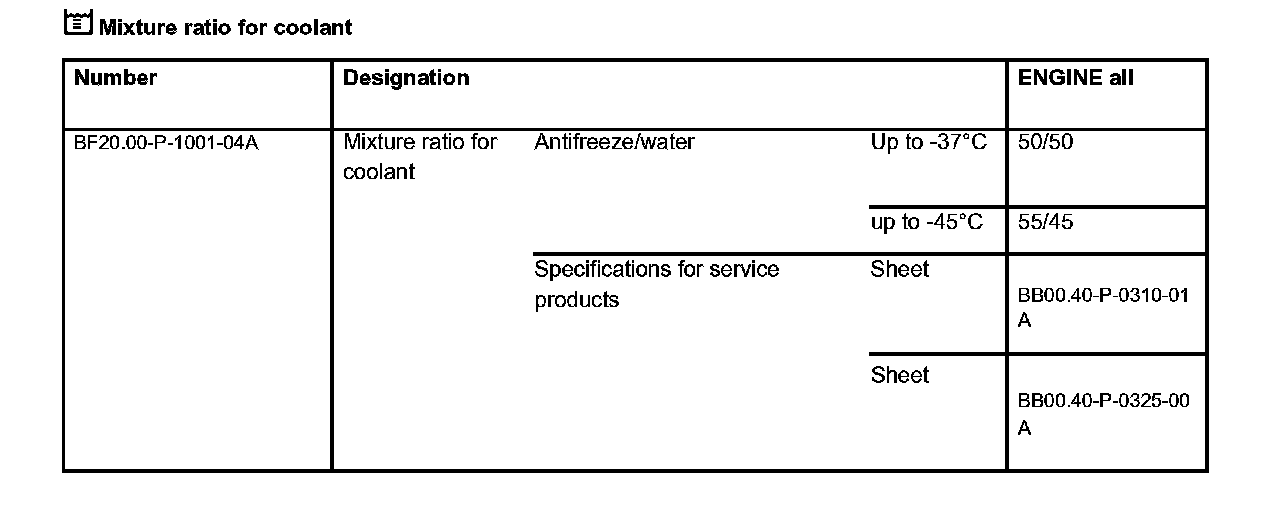 Mixture ratio for coolant: