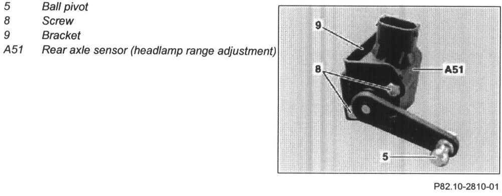 NOTE: Remove mount (9) from rear axle sensor (headlamp range adjustment) (A51)
