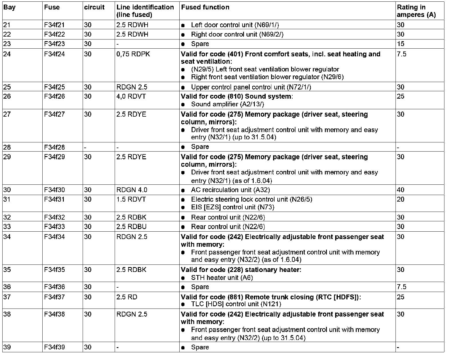 GF54.15-P-1256-04Q Fuse Assignment Of Fuse Box In Interior Compartment On Driver's Side