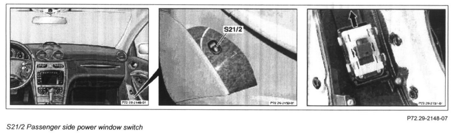 4 Unlatch passenger side power window switch (S21/2), take out