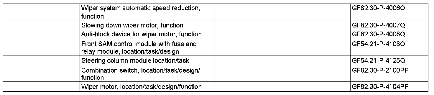 The wiper system, and thus the wiper motor (M6/1), is informed of the wiper speed by the front SAM control module with fuse and relay module (N10/1) via the serial interface. Wiper operation is not influenced by one-touch or afterwiping. The front SAM control module with fuse and relay module (N10/1) receives messages via CAN class B from the steering column module (N80).
