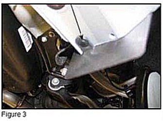 1. Locate and remove the two rivets on the rear right side wheel house (Figure 2 and 3).