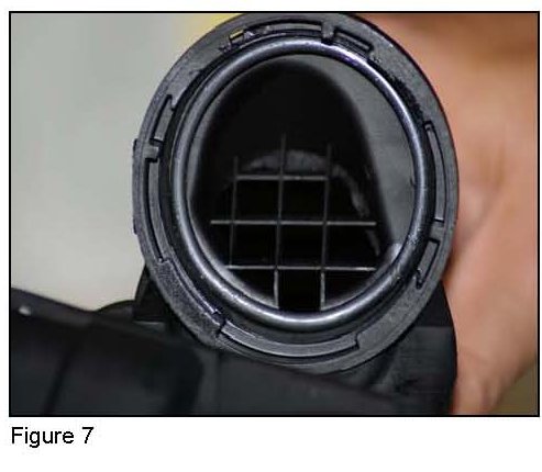 Model 209: If the mat is covering the intake fitting (Figure 5), remove the damping mat and glue a new damping mat in the correct position (Figure 6). Also fit a protective cap on the intake fitting of the shutoff valve.