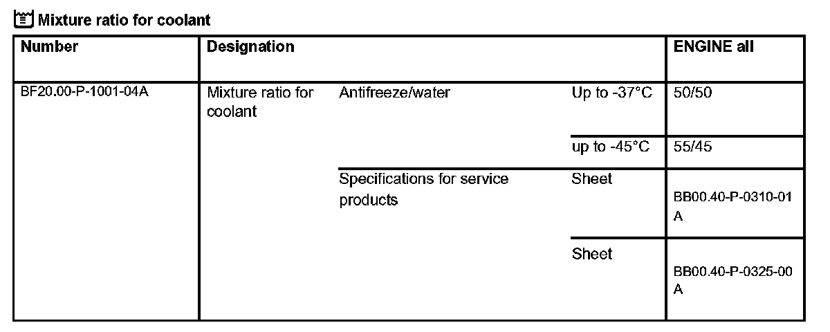Mixture ratio for coolant: