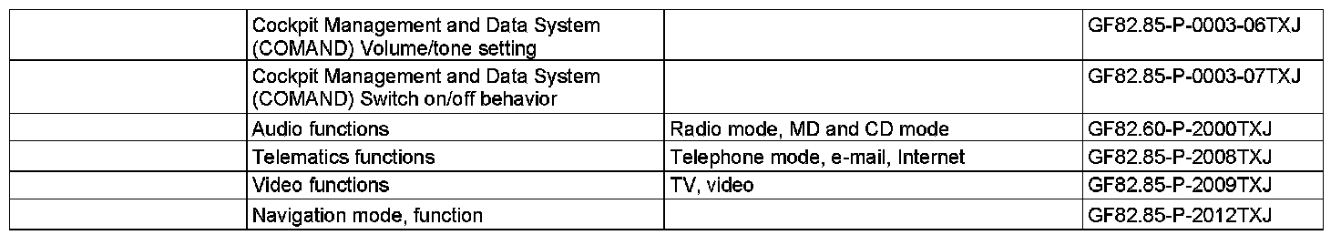 The following systems controlled by the COMAND operating, display and controller unit can be operated with the aid of the buttons on the MFL and the multifunction display of the instrument cluster, and information on the systems can be called up:
